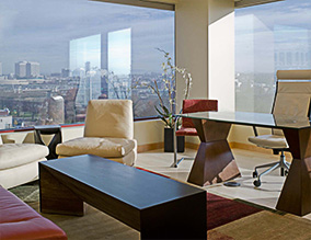Completed in October 2008, this expanding international food company Golden Temple, moved their marketing offices from Eugene to Portland where we identified the space needs. They chose light filled office spaces which we designed with sustainable finishes such as carpet, cabinets, furniture, and other floor coverings. The gingko leaf pattern was used as privacy screen for the glassed in offices. Sliding doors in the conference room also used the ginkgo leaf pattern pressed in between a sustainable resin product as a privacy element. Colorful Zen surroundings provide a restful workplace for the new marketing staff.